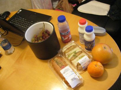 まずは朝食をとります 昨日買っておいたブドウやカリフォルニア産のフルーツ