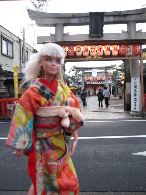 五条の大橋のたもとにある 牛若丸と弁慶の可愛い像 ↓ 先斗町へ行く途中にであった 十日えびすに出会いました お正月なので 12日まで開催しているそうで 皆さん笹に飾りが付いているものを買い求めていました