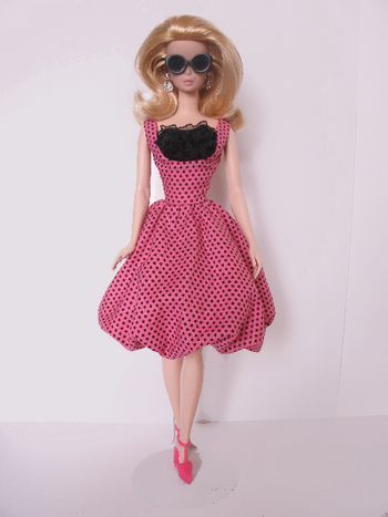 | ピンクのチュチュスカートと 黒のパフスリープTシャツ