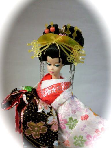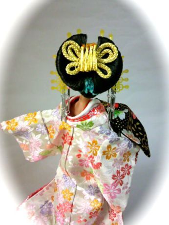 黒髪を植毛して上方風の伊達兵庫に結いました。