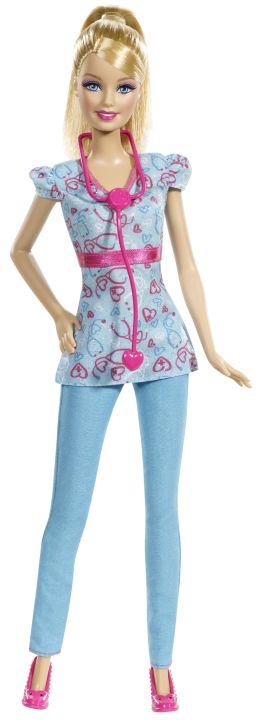 | Barbie Careers Twin Babysitter Doll and Playset | Barbie Careers Eye Doctor Doll and Playset |
