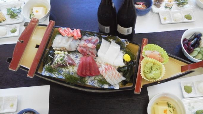 | まずはビールで乾杯 お刺身の舟盛りからです |