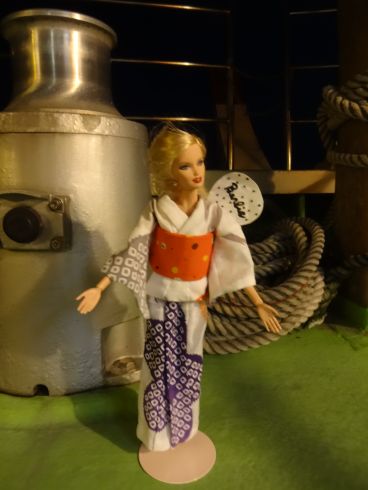 | 我が家のバービー 手拭いでつくった 浴衣を着ています。