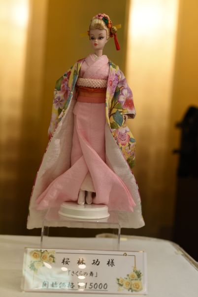 | 5 | 本多 淑人 『東京踊り〜桜の若衆と美女〜』 1937年7月、東洋一の大劇場とも言われた 浅草国際劇場が完成し、 松竹歌劇団によるレビュー等が 上演されていましたが、 1982年4月に惜しまれつつも閉鎖されました。 そのときの演目が『東京踊り』でした。 それから3年後の1985年9月、 国際劇場の跡地に開業したのが バービーコンベンション会場にもなっている 浅草ビューホテルです。 今回は、かつてその国際劇場で上演されていた 豪華絢爛なレビューのワンシーンをイメージして 元禄風衣装と髪型の若衆と美女に扮した 二体のバービを、 男役と娘役に見立ててペア作品にしました。 130,000円 で落札いただきました |