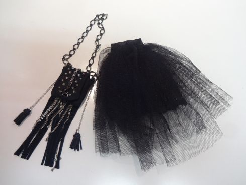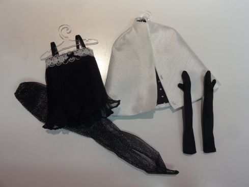 抹茶ミルク 白のケープ 黒のランジェリー 黒の手袋 ラメ入りタイツ |
