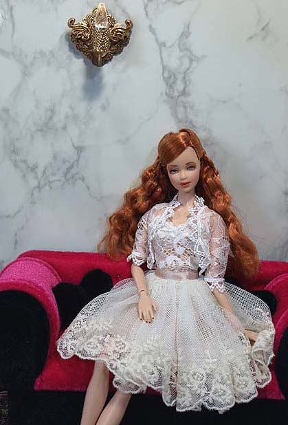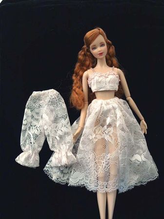 | Mars様 タイトル:[Barbie in Japan 2021 * Spring Gift Set] 5000円スタート アンディーウォーホールの可動ボディにステッフィーモールドのヘッド ロングドレス、レースの下着とルームウエァのセット レースのオールインワン(白、グレー各1枚)、ボレロ、スカート ブルーグレーのサテンと黒レースを合わせたビスチェ、黒のタイトスカート 靴(黒、ピンク各1足) 電池式LEDライト、フラワーアレンジ 画像には映っていませんが旧バービー用のスタンド1個もお付けいたします |