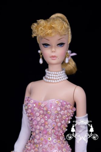 magia2000様 タイトル:PINK SERENADE IN JAPAN 開始希望価格:50000円 She is created witha silkstone repro #1 Barbie, and inspired to the iconic Solo in the Spotlight dress. We wanted to celebrate the new Magia concept of creating with the silkstone repro. This is the very first doll in the repro series Fully embroidered with tiny beads and sequins in matching colors over a silk duchesse satin in baby pink color, glittered tulle gown and handmade jewels. Fully repainted face with professional acrylic colors and professional sealing. She comes over her original repro stand and in Magia2000 box. |