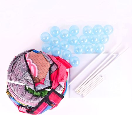 数人の子供が一緒に遊べます ※ 必ず保護者様の目の届くところでご使用をお願いいたします 横228㎝ 高さ99㎝ と 大きいです たたむと ここまでコンパクトになります ピンクのバッグの中にすべて入ります。