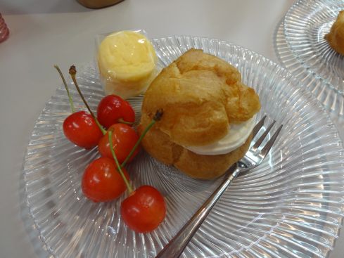 | 今日のスィーツ WS開催で初めて成功した シュークリーム これで失敗したら 一生シュークリームは作らないと覚悟の作品(オーバー) と 山形からのおくりもの さくらんぼ! すごーーーく 甘かったです。 そして 差し入れのスフレ! |
