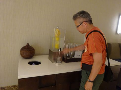 レモン水を飲み干します 「お疲れ様でした}