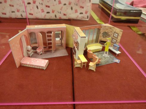 手のひらに乗る紙製のバービードールハウス その中にある もう一つ小さなドールハウス!