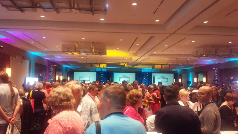 挨拶がはじまり 役員さんと思われるメンバーが舞台上でダンスをしています