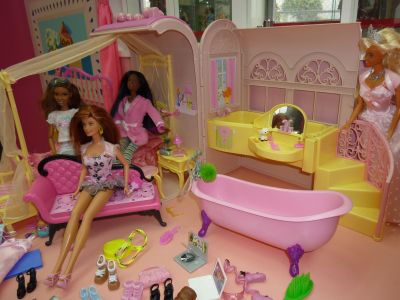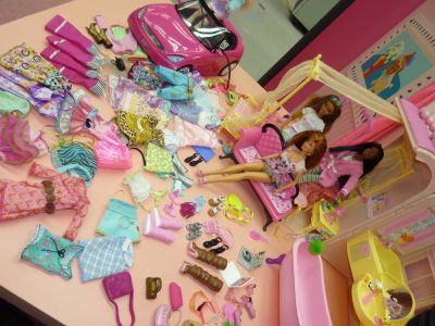 その両サイドにある 飾棚の中には バービーとグッズが 飾られています