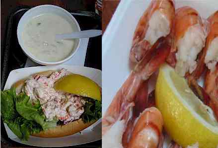 地元の人が集まる マーケットって雰囲気で 地元ッティーになった気分です とりあえず セットのロブスターサンドにクラムチャウダーを個々に 別に シュリンプカクテルを頼んでみました