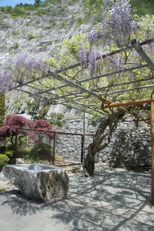お外には藤の花が咲いていたり お花の歓迎もあります