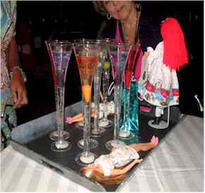 内容はバービー フランクシナトラ モンローなどのそっくりさんが 歌ったりトークしたりと かなり 楽しくて盛り上がりました 特にバービーは可愛いですよ そのショーが終わると お待ちかねの コンベンションDOLLが配られます なんと ウエイターさんがトレンチの上に10体乗せて運んでくれます なんだか おかしいのよ