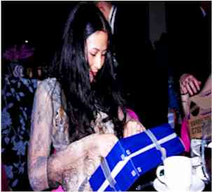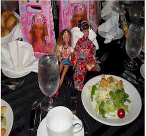 テーブルホステスさんのDOLLにはサインが入っています 全ホステスさんのに入っているのでしょうか? その後 ボブマッキーデザインの 45thバービーを全員にプレゼントしてくれます 普通に売っているのとはちょっと違っていて ボブマッキーのサインが シールで貼られています (^_^;) そして そのDOLLを持って ボブマッキー氏と写真を撮れるという 特別サービス付きなのです