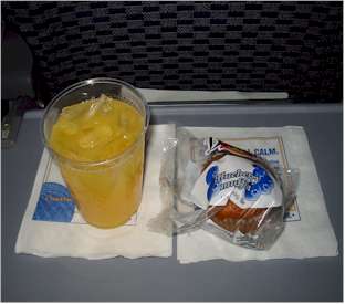 早速 機内食? です 国内線なので軽く ケーキとジュースです