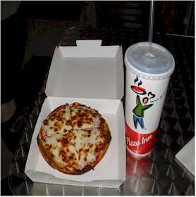 一番小さな ピザ1枚とコーラを一つ頼んで ピザは4等分してみんなで 味わって見ました