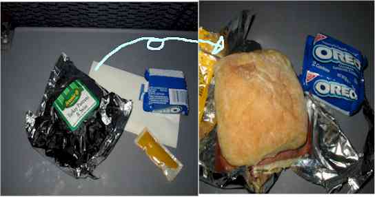 途中で こんなおやつが出ます パストラミ ターキーの入ったパンと