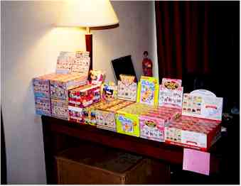 これで いったん部屋に戻り 荷物を置いて自分の部屋でセールを開始します あぁ どきどき お客様 ぽつり ぽつりといらしてくださいます おーー キュート と 日本使用の品物を見ては 大歓声 でも 買うというわけではないのです 私が きっと売れるだろうと思っているのは バーバリーです このDOLL みなさまもご存知とは思いますが ネットオークションでかなり 安い金額で取り引きされている子を 3人ばかりゲットして持参しました 販売価格は200ドル 絶対に値切られるだろうから・・・ (*^-^*) そして 食玩 プチブライス 手作りの着物などなどです まずは 40分ほど開けて 動きはなしです 1階で プロの方々が販売を始めるので まずはDOLLを買いに下へおります