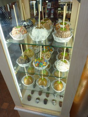 このお店は りんご丸ごとチョコレートコーティングして シュガーでデコレーションして売っています どれほどのカロリーだろうか? 思うだけで お腹一杯・・・ はい見るだけ見るだけねぇ