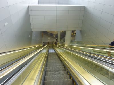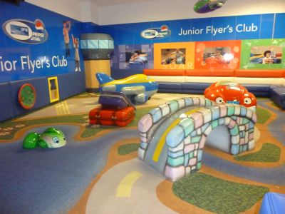 怖いくらい高くてながいのです 右の端にちょっと見えている人は 空港内で体力を作っているのでしょうか 何度もかけのぼり ゆっくり下りるトレーニングをしていました ちょっとびっくり SP? そして 降りたすぐそばに 子供の遊び場があります 小さな飛行機に トランク おもしろいですよねぇ
