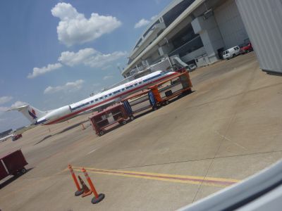 ダラスからクリーブランドへはこんなに小さな飛行機で向かいます 今見えている目線が飛行機の窓から撮った画像なので どれほど低くて小さいかわかりますか?