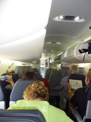 中はこーんなに小さい 2席2席 立つと荷物のケースに頭をぶつけるのです(この背の低い私がですよ) そして コックピットが開いたまま 前にも経験ありますが あれもダラスだった・・・
