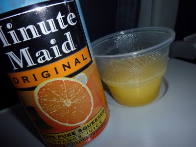 小さな飛行機ですが 揺れもせず のんびりオレンジジュースを飲みながら ちょっと意地になって オレンジジュースです
