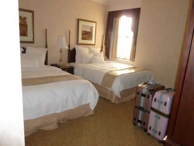 あぁ 何度か道を間違えましたが 無事到着 ナビゲーターさま ありがとうございます ここがホテルです 大きいのです! ところが普通は駐車係りがいて荷物をおろしてくれたりするのですが いないのです ??? 思い切って表にいるおじさまに聞いてみました 「ここではなくあっちに駐車場があるよっ」て 言われたとおりに行くと 駐車場はあったのですが荷物をおろしてくれるポーターさんがいない そう 自分で全てするセルフ駐車場に案内されたのです ボロボロな格好しているし お金を持っていないのが分かるんだわーーーと ちょっと悲観的な気持ちになり チェックインします はい ご想像とおり荷物は自分たちでガラガラと運びました ところが 嬉しいことになんと キーは