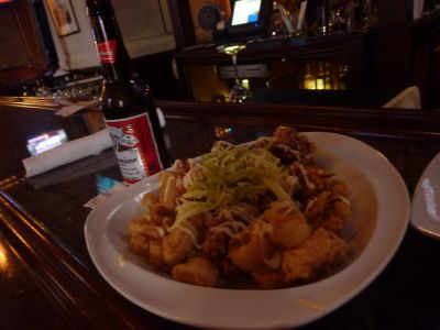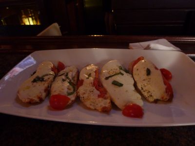 開いている店はホテルのバーだけしかなさそうなので ここで カラマリとモツァレラチーズとトマト・バジルの乗ったトーストを頼みました 夫はやっとビールが飲めるので嬉しそう お食事もそこそこに部屋へもどり ネットはあきらめて寝ることにします・・ おやすみなさい 本当に長い1日でした