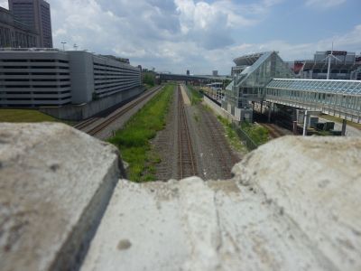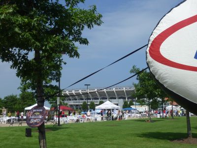 途中で何かイベントをやっている風景です よくわからない・・・? その向こうに見えるのが クリーブランドブラウンズスタジアム