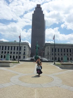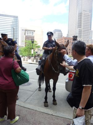馬に乗ったお巡りさんに遭遇! 馬の鼻をなでさせてもらったりと クリーブランドを満喫しました 直射日光にあたると じりじりと暑いですが 日陰に入るとからっとしていて 風がとおり気分は爽快!