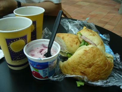 とは言え コーヒーとヨーグルト 1人前のパンを半分づつ・・・・ それでも 充分です ヨーグルトはアメリカンチェリーがたっぷり入っていて おいしかったです