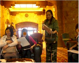 全員で集合写真を パチリ わぁ〜い と はしゃいでる私が・・・ おかしい。 ● それでは とにもかくにも 済ませておかなければならないのは レジストレーション(受付)です 海外からの参加者はパスポートを提示する必要があります 登録している人と 参加者が違っていると参加ができないのですよ 意外と厳しいです。