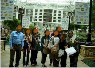 ホテルの庭中ほどから 写真を一枚 パチリ ホテルがガラスで覆われていて 大きなアトリュウムのようです。 ● 9時10分ロビーに集合です。 そして 爆裂さんの説明を聞きます (今回の旅行も 爆裂おねぃさんがいなかったら 足も手も動かなかったです ありがとう) レジストレーションを済ませて お買い物と観光に出かけることにします