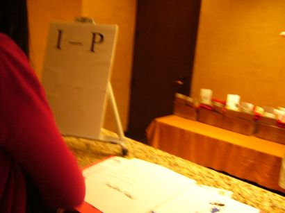 受付は名前のイニシャル別に受け付けてくれます 後ろに見える箱に 各人のためのセットが入っていて 渡してくれます この中には ネイムカードや説明書 その他ショップからのお土産などが 入っています 受付が終わったら 隣でバッグをプレゼントしてくれます