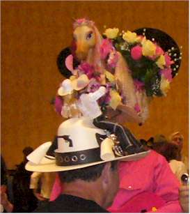 ダラスといえば ウエスタンルック・と言えばテンガロンハット そのテンガロンハットに バービーや花 馬などを飾っています。