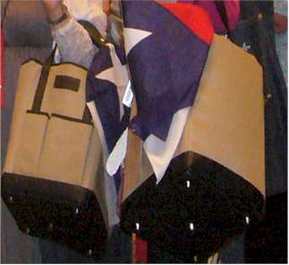 お会計が済んで(Sさま ごちそうさまでした) お店をでようとしたら みんなを集めて フォト フォトといってくれました みんなが写真を撮りたがっていたのがわかったようです。 まじ むちむち さわりたかったぁ〜 きゃぁ〜ん。 とっても 良くしてくれたお店にありがとうを言って ホテルに戻りましょう 夜には コンベンションのウエルカムパーティーがあります それに遅れないように・・・・ ● ホテルに到着後 冷えた身体を温めるために シャワーを浴びて ウエルカムパーティーの準備をしましょう と 思ったのですが なんと 荷物が届いていない! 買い物した品物を運んでくれたポーターさんに チップをあげて 持ってきてと頼んで部屋番号をかいて渡したのに 待てどくらせど 荷物がこない こない 来ないのよ チップは後からにすればよかったよぉん (;_;) どうしよう・・・・ えぇん最悪 クレームの英語は全くわからないので ロービーに向かいます が どうにもこうにも 伝えられず 語学が堪能なかとちゃんにお願いしました すると 5分もかからず荷物がお部屋に届いたのです さすがです あぁ 私の英語じゃ伝わらないんだなぁ・・・・ (ありがとう かとちゃん) ウエルカムパーティーは特に着飾る必要も無い とても カジュアルなイベントです。 出席したメンバー全てに ボトルケース?のような人形を入れるのにぴったりな バッグをプレゼントしてくれました 中にはお菓子やドクターペッパーなどが入っています でも 大きすぎてどうやって持って帰るの?というほどのものなのです