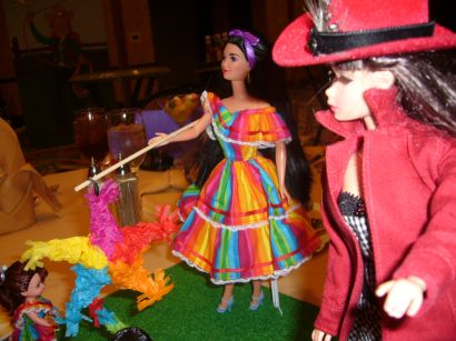バービーも手づくりドレスを着て(Sawakoさま 作品)パーティーに出席です。