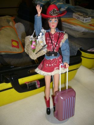 ウエスタンルック! スーツケースと手荷物バッグも持っておでかけです 後ろは