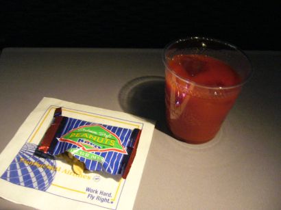 アメリカでは国内線でも ジュースと簡単なお菓子がでます