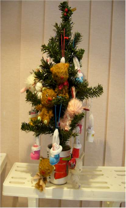 この日6時からのクリスマスパーティーを控えて 時間制限もあり 縫い終えることが出来た方は 6〜7名さまでした・・・ 手のひらの中に入ってしまうほど 小さなベアーやうさぎたち・・・ すぐに縫えるのですが ひっくり返す手間のすごいこと! 私などは返すことも出来ません(^_^;) 今回は涼先生のご指導のもとに進んでおりますが やっぱり 先生! さっさと返してしまいます。 今回のお教室は お針子教室の蜜蜂先生や リペイント教室の JAMちゃん先生も参加されて 大盛り上がりです。