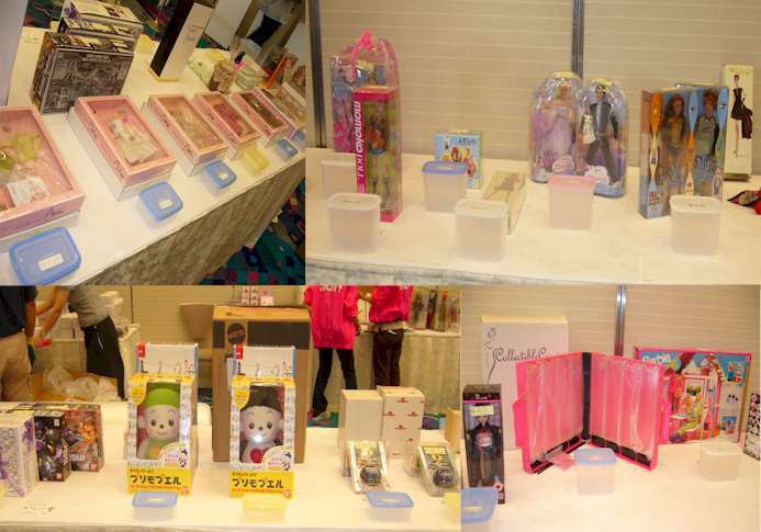 奥はBANDAI社の桜奈の展示ブースです 手前はラッフルの品々なのです。