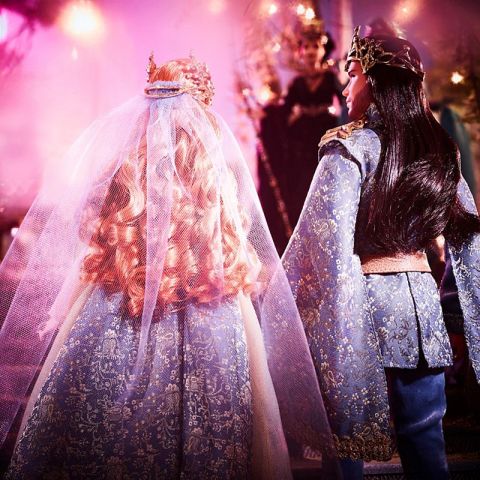 Fashion: Barbie – Gown, heels, veil; Ken – tunic, pants, boots