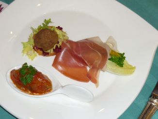 MENU Amuse-Gueule Rillettes de Bœuf au Vin Rouge et aux Herbes, Ratatouille, Jambon Cru avec Salade de Saison 赤ワイン風味の牛肉のリエットハーブの香り、南仏野菜のトマト煮込み 生ハムと季節野菜を添えて