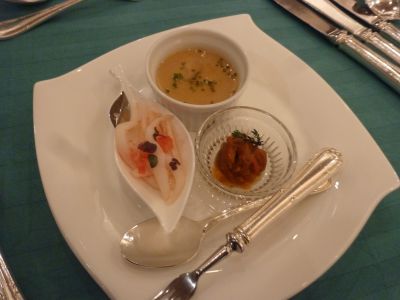 フォワグラの茶碗蒸し仕立て、南仏野菜のトマト煮込み