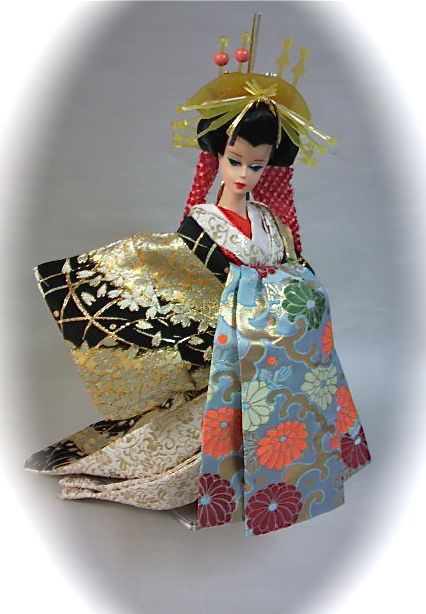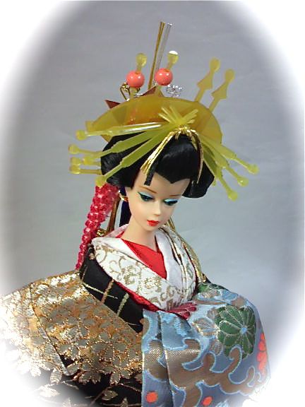使用した人形はリプロのビジーギャルバービーを黒髪に植毛して結い上げてあります。