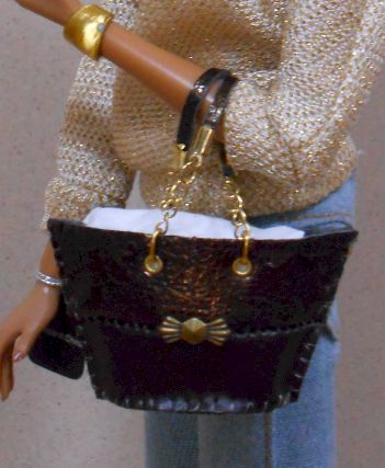 | MS-15 ハンドバッグ 黒エナメル パイソン |